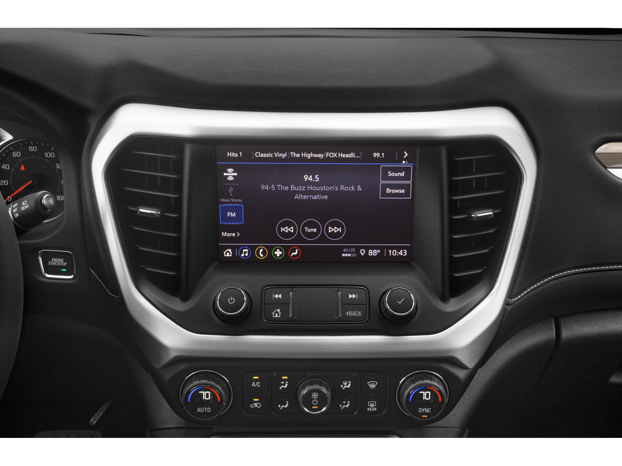 - Audio system, 8" diagonal GMC Infotainment System includes multi-touch display, AM/FM stereo, includes Bluetooth® streaming audio for music and most phones; featuring Android Auto and Apple CarPlay capability for compatible phones