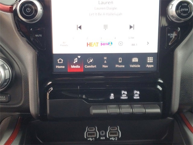 Apple CarPlay/Android Auto, Auto Power-Folding Mirrors, Auto-Dimming Exterior Driver Mirror, Black Premium Power Mirrors, Bucket Seats, Convex Wide-Angle Exterior Mirror Insert, Exterior Mirrors Courtesy Lamps, Exterior Mirrors w/Heating Element, Exterior Mirrors w/Supplemental Signals, Navigation System, Power Adjust 8-Way Driver Seat, Power Adjustable Pedals, Power driver seat, Quick Order Package 21W Rebel, Radio: Uconnect 5 Nav w/12.0 Display, Rear Window Defroster, Rebel Level 1 Equipment Group, Remote Tailgate Release, Speed control, Wheels: 18 x 8.0 Painted Mid-Gloss Black, Wireless Charging Pad.